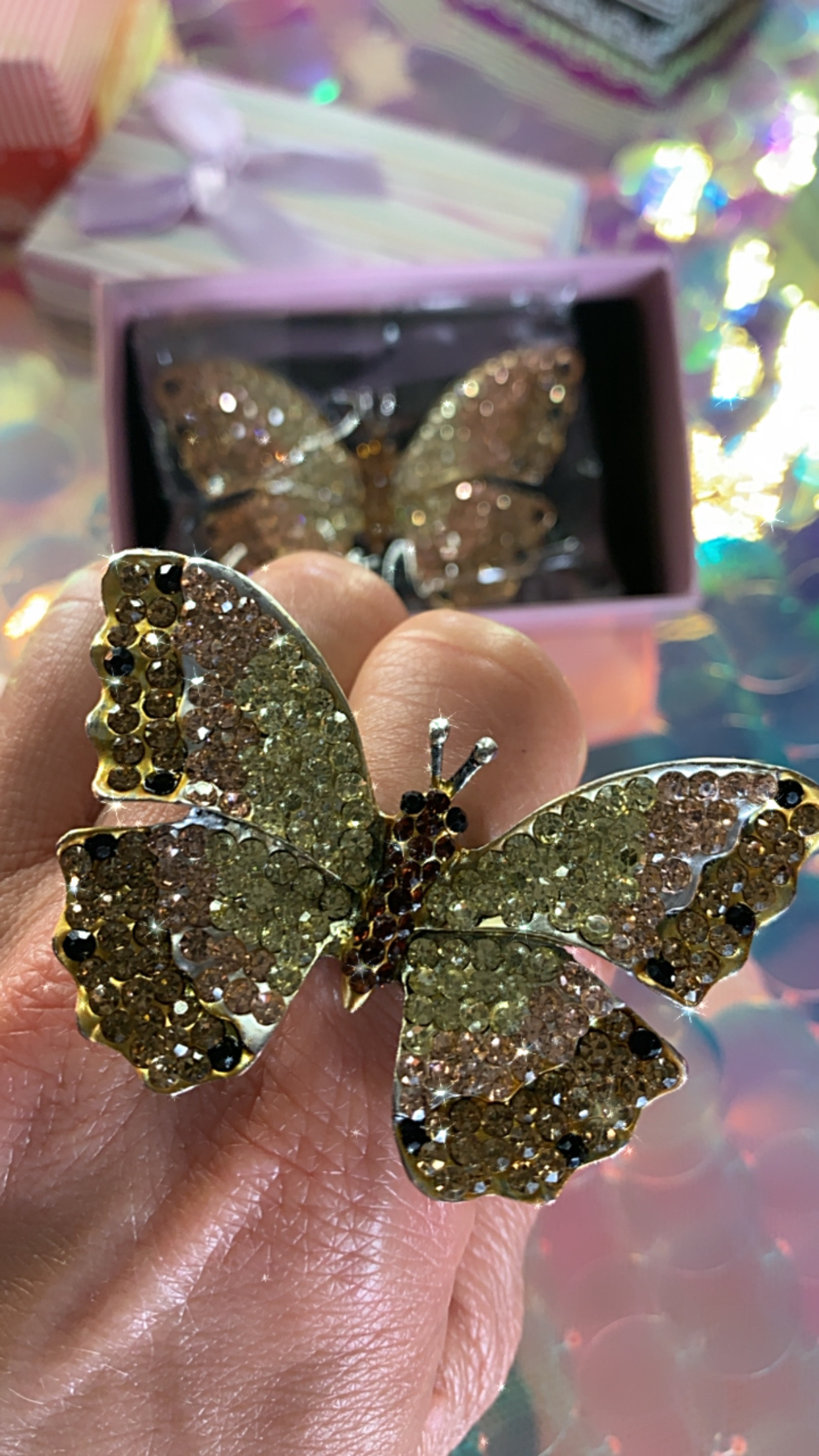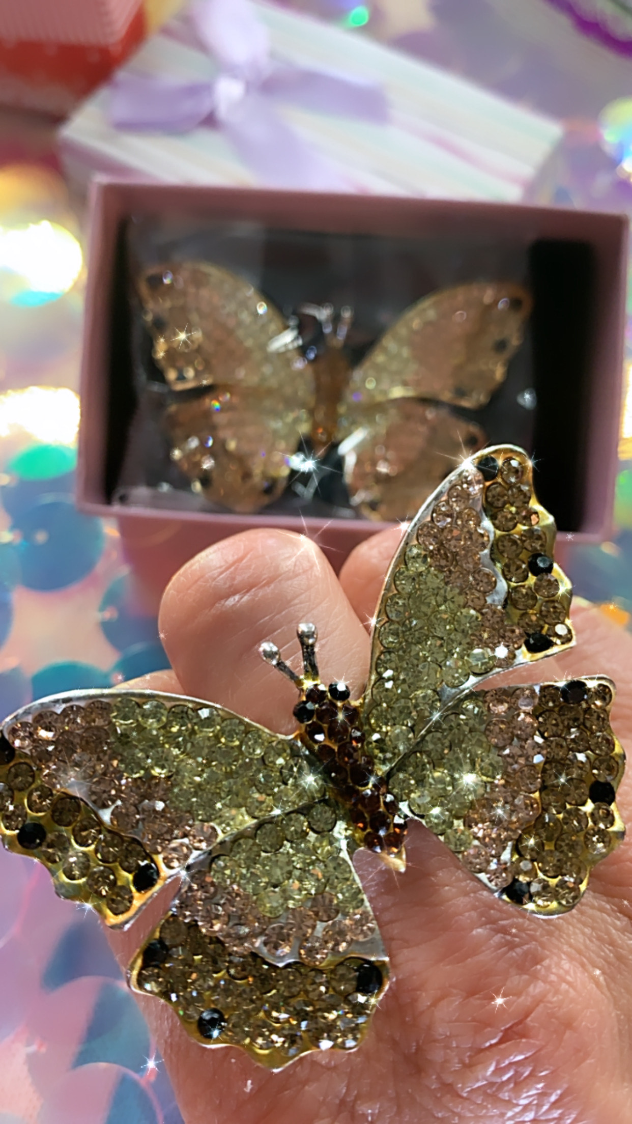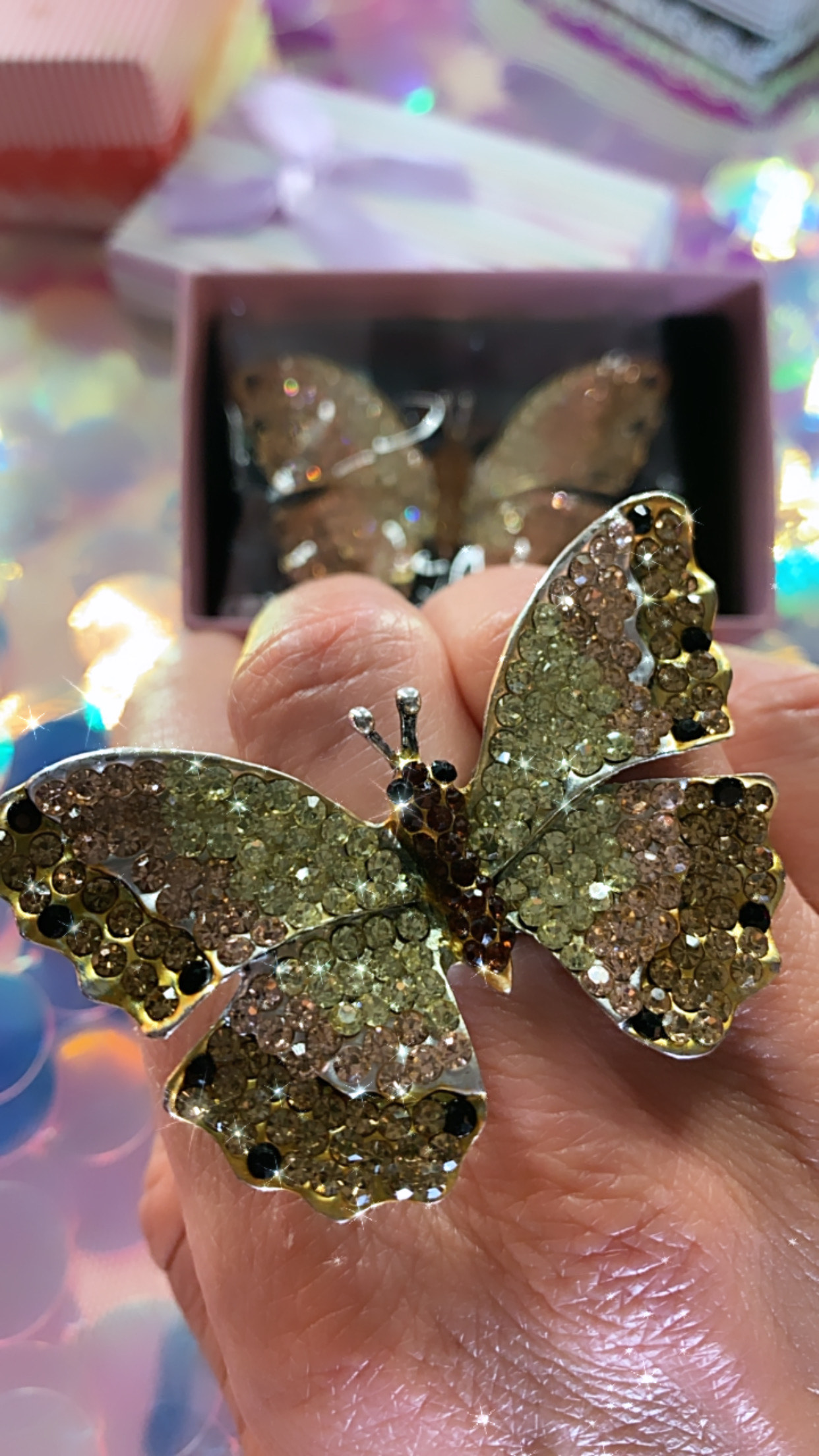 Ombré Rhinestone Crystal Adjustable Stretch Butterfly Ring